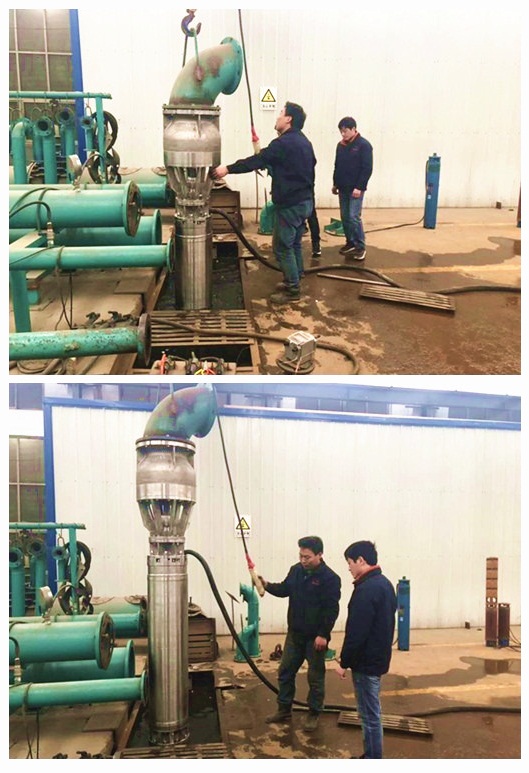2019年5月21日我公司流量1200立方、杨程18米的不锈钢304材质潜水泵测试合格!